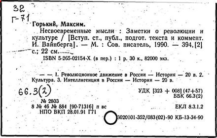 Несвоевременные мысли [Текст]: Заметки о революции
