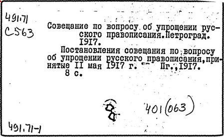 Официально реформа русской орфографии была объявлена 24 мая 1917 года (11 мая по старому стилю) в виде «Постановлений совещания по вопросу об упрощении русского правописания». На основании этих постановлений 30 мая 1917 года (17 мая по старому стилю) Министерство народного просвещения Временного правительства предписало попечителям учебных округов немедленно провести реформу русского правописания. Еще один циркуляр министерства, касающийся этой реформы, вышел 5 июля 1917 года (22 июня по старому стилю).