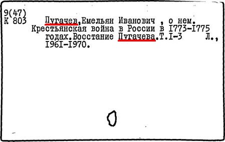 Литература: Крестьянская война в России в 1773-1775 гг. Восстание Пугачева, т. 2, 3, Л., 1966-70; Андрущенко А. И., Крестьянская война 1773-1775 гг. на Яике, в Приуралье, на Урале и в Сибири, М., 1969; Рознер И. Г., Казачество в Крестьянской войне 1773-1775 гг., Львов, 1966; Следствие и суд над Е. И. Пугачевым, "Вопросы истории", 1966,. No 3, 4, 5, 7, 9; Лимонов Ю. А., Мавродин В. В., Панеях В. М., Пугачев и его сподвижники, М.- Л., 1965; Мавродин В. В., Крестьянская война в России в 1773-1775 гг. Восстание Пугачева, т. 1, Л., 1961.