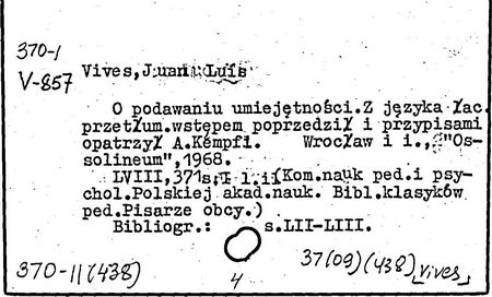 Литература: Лоренцсон В. Н. Выдающийся испанский педагог-гуманист X. Л. Вивес, Советская педагогика, 1959, № 8; Watson F., Vives. On education, Camb.,.1913; Urmeneta F. de, La doctrina psicologica у pedagogica de Luis Vives, Barcelona, 1949; Norena C. G., Juan Luis Vives, The Hague. 1970; Homenaje a Luis Vives, Madrid, 1977; R e n s o n R. Le jeu chez J. L. Vivies, в кн: Les jeux a la Renaissance, P., 1982.