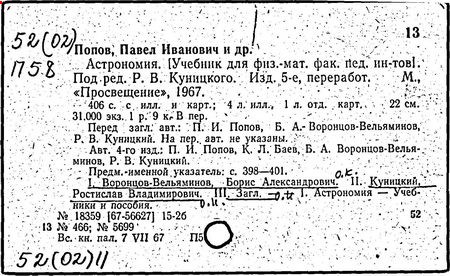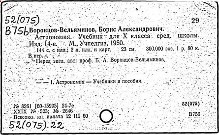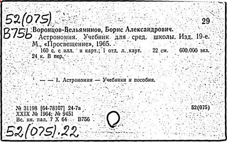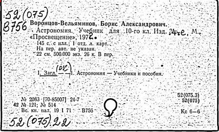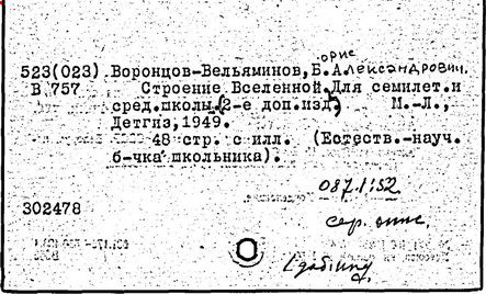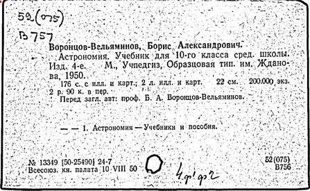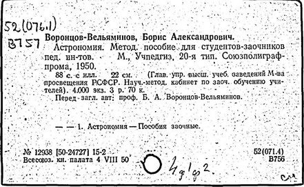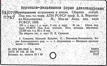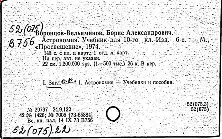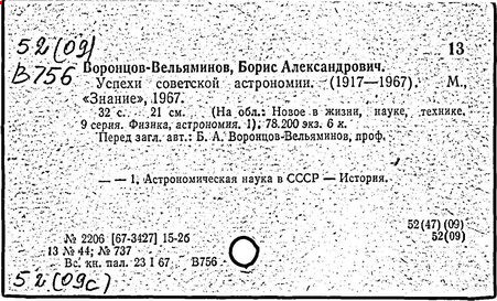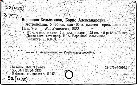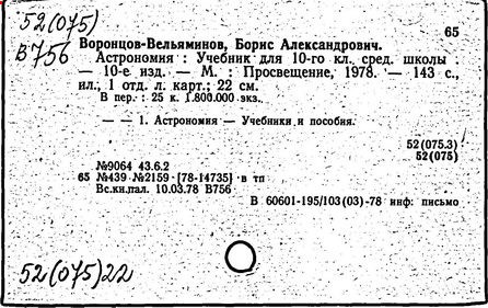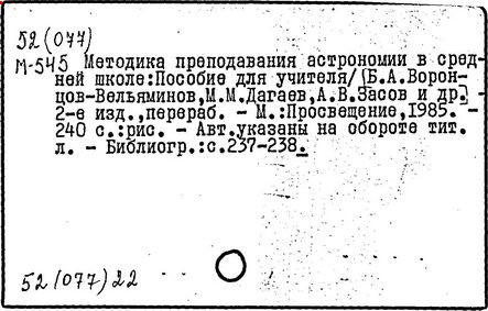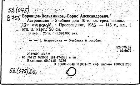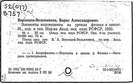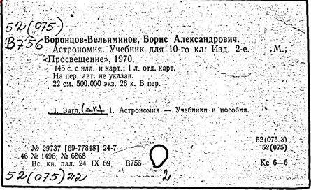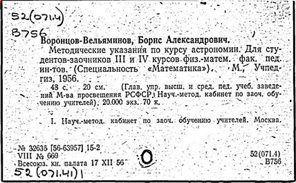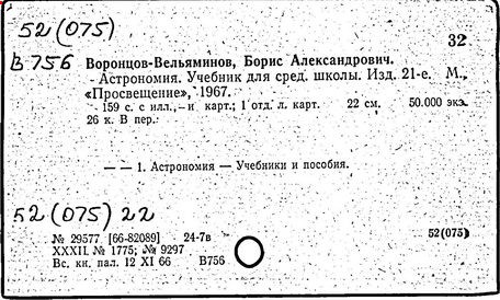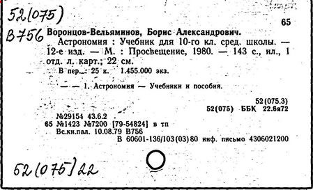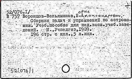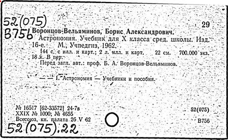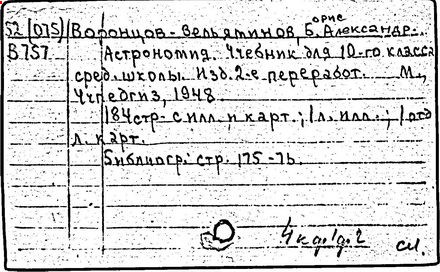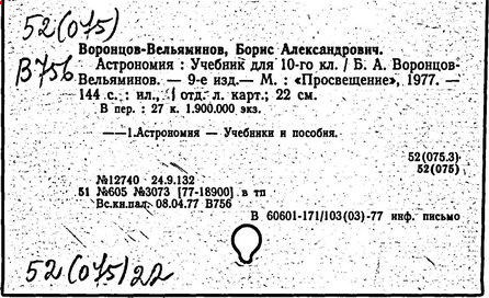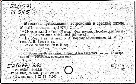 Литература: : Б. А. Воронцов-Вельяминов, Физика в школе, 1974, № 3.