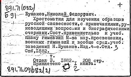 Литература: Mакедонов Л. В., Н. Ф. Бунаков, его жизнь и деятельность, СПБ, 1907; Соловьева В. Д., Педагогические взгляды и деятельность Н. Ф. Бунакова, М., 1960 (библ.); Лапатухин М. С., Н. Ф. Бунаков и его методическая система, «Русский язык в школе», 1974, № 6.