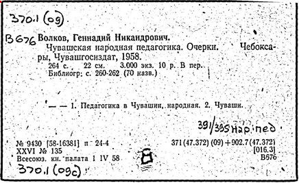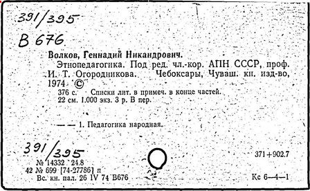 Этнопедагогика чувашей [Текст]/ Г.Н. Волков; Чуваш. гос.