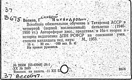 воспитания и создания нац. шк.]/ Г.Н. Волков // Научные труды