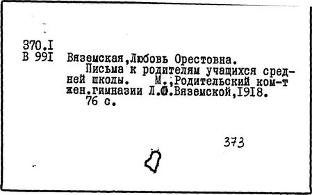 советский педагог и методист английского языка, доктор педагогических, профессор. Родилась в 1869 году в Киржаче. Ее отец – князь Вяземский Орест Полиенович, мать Вяземская Елена Дмитриевна, урожденная Пшенецкая.