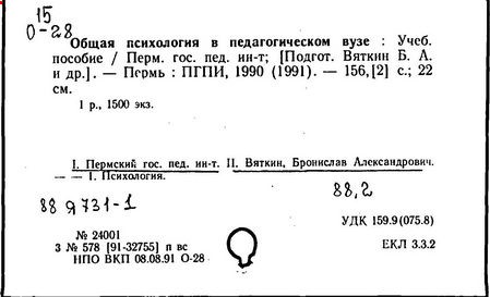 Б. А. Вяткин // Вопросы психологии. -М.: ООО