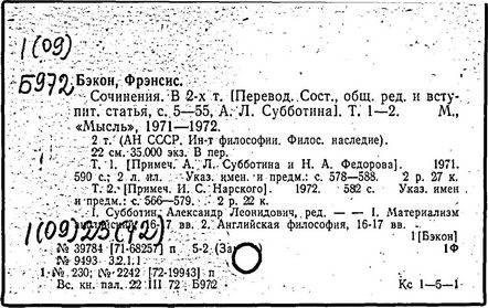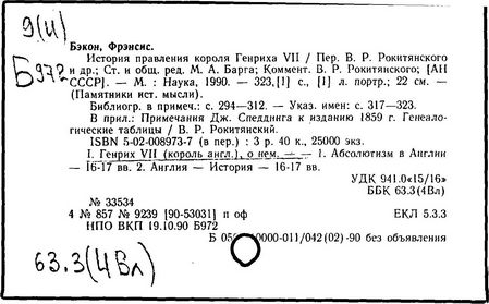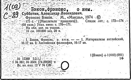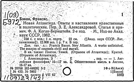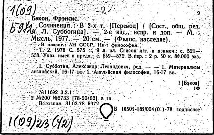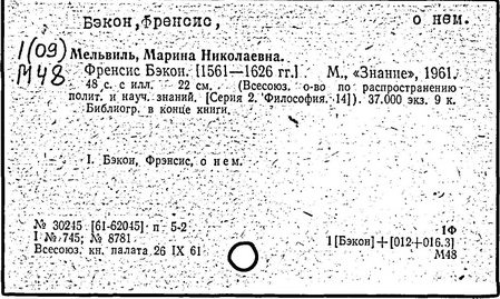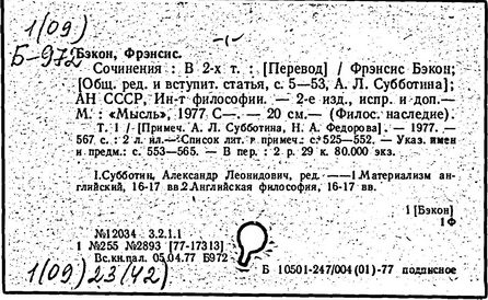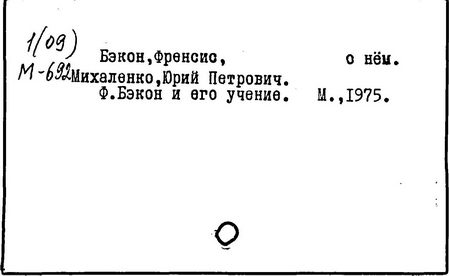 Литература: Субботин А. Л., Ф. Бэкон, М.. 1974; Михаленко Ю. П., Ф. Бэкон и его учение, М., 1975 (лит.); Карев В. М., Этич. воззрения Ф. Бэкона, в кн.; Англия в эпоху абсолютизма, [М.], 1984; Farrington В., F. Bacon: philosopher of industrial science, N. Y., [1949]; Growther J. G., F. Bacon. The first statesman of science, L., 1960.