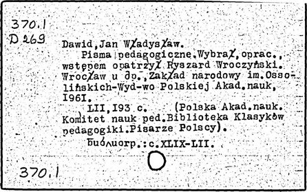 Литература: Denelowna Z., Twórczość pedagogiczna J. W. Dawida. Warsz., 1935; Chmaj L., Prady i kierunki w pedagogice XX w [Warsz., 1963]; Bulat W.. Sarnecki T., J. W. Dawid, 1859-1914, Warsz., 1963.