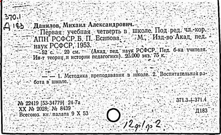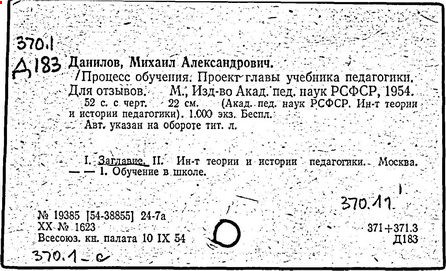 М. А. Данилов; Акад. пед. наук РСФСР, Ин-т теории и