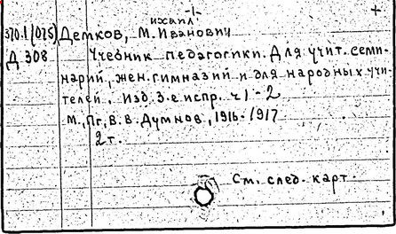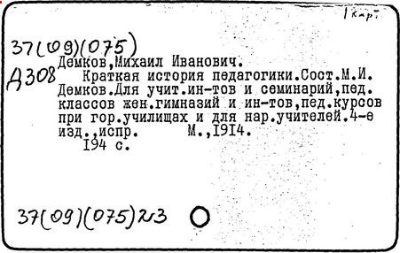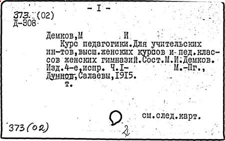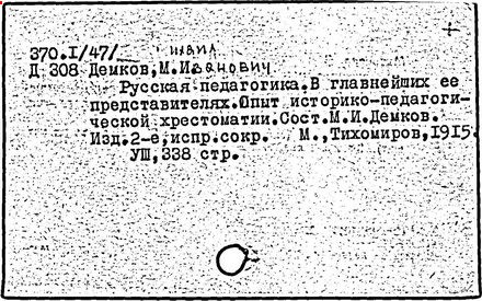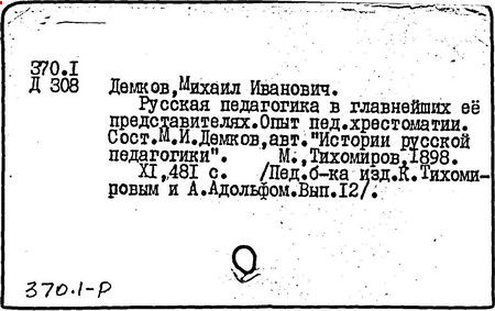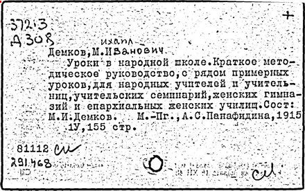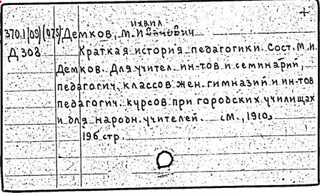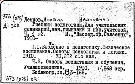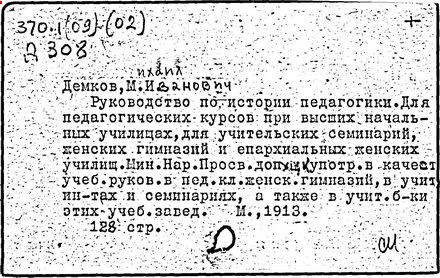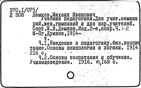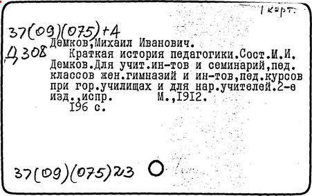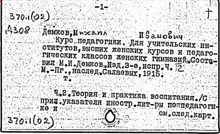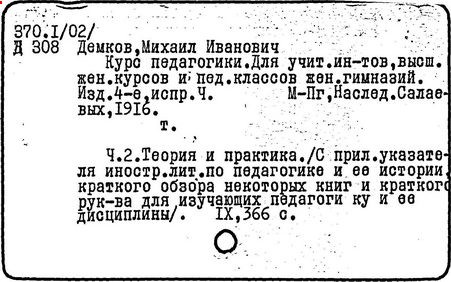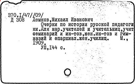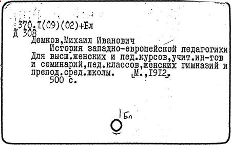 Литература: Педагогические и другие сочинения М. И. Демкова [библиографический указатель], М., 1916.