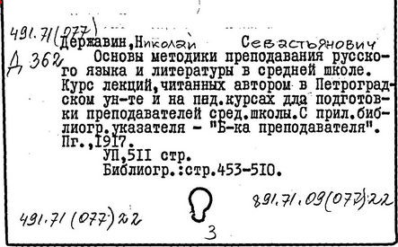 Обобщением собственного опыта стала работа Державина "К вопросу о преподавании русского языка и литературы в средней школе" (1911 г.), где обосновывалось место литературного образования в средней школе как фундамента всей последующей интеллектуальной и культурной жизни человека. Словесность, по мысли Державина, развивая живое, образное мышление ребёнка, формируя его творческую активность и самодеятельность, определяет нравственный рост личности. Раскрытие воспитательных возможностей гуманитарных дисциплин связывалось им с освобождением школьной практики от формализма и логического схематизма. Целью обновлённого курса литературы становилось развитие образного мышления учащихся, формирование творческой активности и самодеятельности через создание у воспитанников навыков научного понимания и толкования явлений художественного творчества. Анализ целостного произведения включал 3 последовательных этапа: самостоятельное чтение учеников, повторное совместное с учителем чтение, сопровождавшееся комментарием и стилистическим разбором, а также рассмотрение формально-содержательного своеобразия памятника в ходе классной беседы. В старших классах преимуществ, внимание уделялось самостоятельной работе с текстом, письменным творческим сочинениям. Только на данной ступени предполагалось введение обзорного курса истории русской литературы 19 века. Параллельно намечался концентрический путь обучения грамматике русского языка, отдельные разделы которой преподавались в тесной связи с анализируемым литературным материалом.