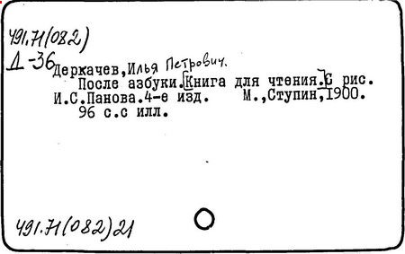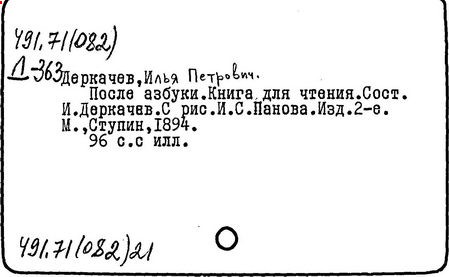 Деркачёв, И. П. После азбуки / И. П. Деркачев; рис. худож. И. Панова. – 2-е изд. – М.: Ступин, 1894. – 96 с.