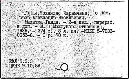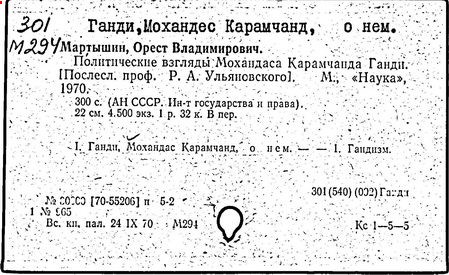 Литература: Комаров Э. Н., Литман А. Д. Мировоззрение М. К. Ганди. М., 1969; Мартышин О. В. Политические взгляды М. К. Ганди. М., 1970; Ульяновский Р. А. Политические портреты борцов за национальную независимость. М., 1980; Горев А. В. М. Ганди. М., 1984; Nair Pyarelal. M. Gandhi - the early phase. Vol. l. Ahmedabad, 1965; Tendulkar D. G. Mahatma. Life of M. K. Gandhi. Vol. 1-8. Bombay, 1951-54; Sethi J. D. Gandhi today. Durham, [1978]; Mukherjee H. Gandhiji. A study.New Delhi, 1979; Fischer H. M. Gandhi. Berlin, 1981