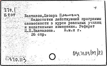 Литература: Серополко С. О. Ц. П. Балталон: (Некролог) // Педагогический листок. – 1913. – № 3; Н. Р. Ц. П. Балталон: [Некролог] // Для народного учителя. – 1913. – № 4.