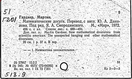 and diversions/ M. Gardner (London: Bell a. sons).
