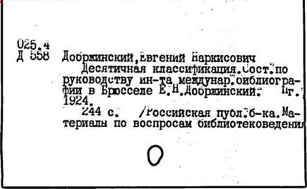 Литература: Банк В. Э. Е. Н. Добржинский и Высшие курсы библиотековедения // Библиотечное обозрение. 1924. Кн. 1 / 2; Гущин Б. П. Е. Н. Добржинский и система Брюссельского института международной библиографии // Там же. 1926. Кн. 1 / 2; Добржинский Евгений Наркисович // Деятели отечественной библиографии (1917-1929): Справочник. М., 1994. Ч. 1; Е. Н. Добржинский и библиотечное дело в России: Доклад и сообщение научной конференции, 2-3 февраля 1994 г., Санкт-Петербург. СПб., 1997.