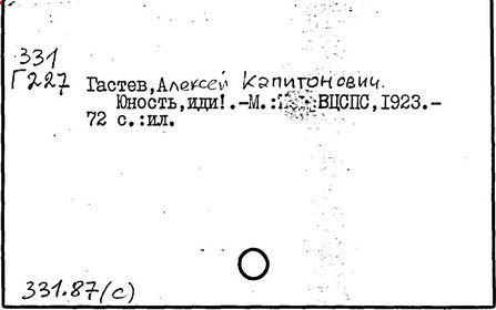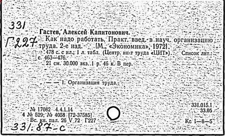 Литература: Крупская Н. К., К вопросу о подготовке рабочей силы, Педагогические сочинения, т. 3, M., 1979, Луначарский А. В., Воспитание нового человека, в его книге: О воспитании и образовании, M., 1976, Гастев Ю. А., От "социальной инженерии" к кибернетике. О методологической концепции ЦИТа в книге: Гастев А. К., Трудовые установки, [M., 1973], ЦИТ и его методы НОТ, M., 1970, Осовский E. Г. Развитие теории профтех. образования в СССР (1917 - 1940), M, 1980, гл. 3-4, Катханов К. Н., Талантливый деятель профтехобразования, "Социалистич труд" 1982, №10, Богуславский М., Цирульников А., Железное эхо, «Профессионально-техническое образование», 1988, № 7.