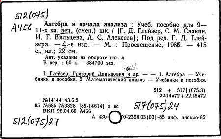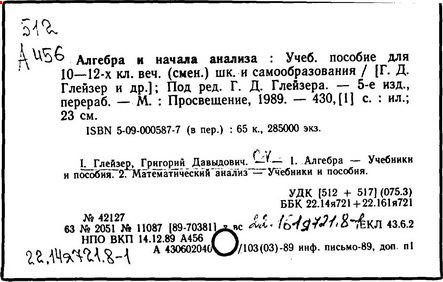 Алгебра и начала анализа [Текст]: Учеб. пособие