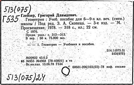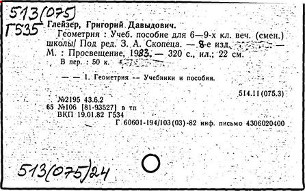Геометрия [Текст]: учеб. для 9 кл./ Г. Д. Глейзер.