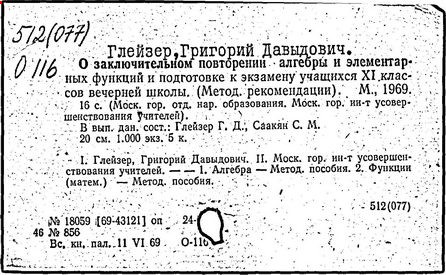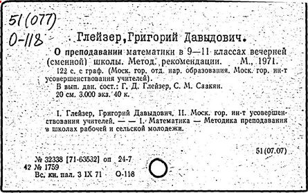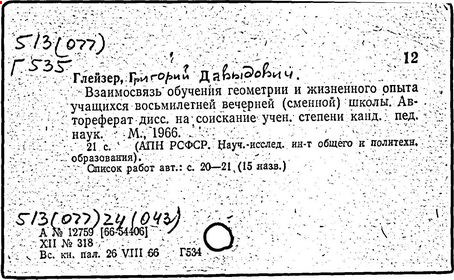 обучения в сред. шк.]/ Г.Д. Глейзер // Ученые записки.