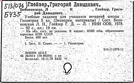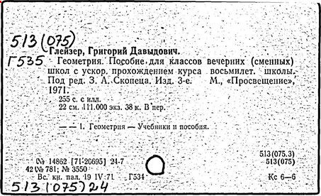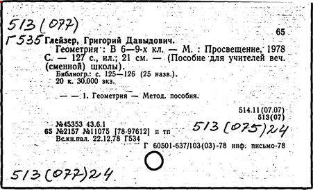Геометрия [Текст]: учеб. для 7 кл./ Г. Д. Глейзер.