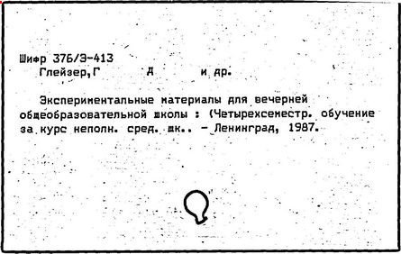 веч. (смен.) шк. и самообразования/ Г.Д. Глейзер. -
