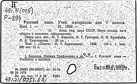 М. Т. Баранов, Л. Т. Григорян, Т. А. Ладыженская и др. -