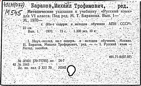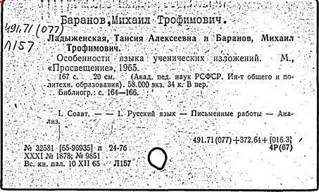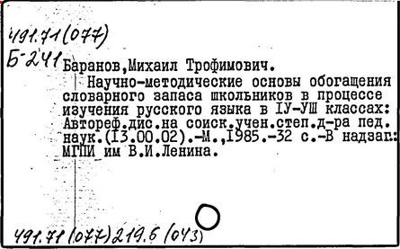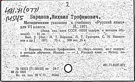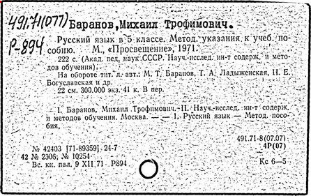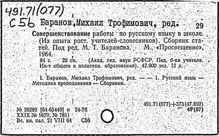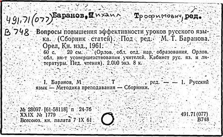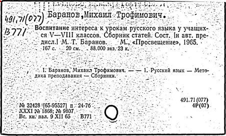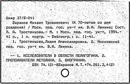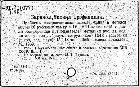методист]/ М.Т. Баранов // Рус. яз. в шк. -1995. -N 5. - С. 48-52