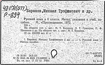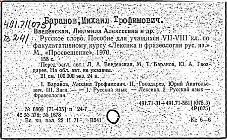 М.Т. Баранов. -7-е изд. -М.: Просвещение, 2002. -239, [1] с. -
