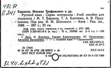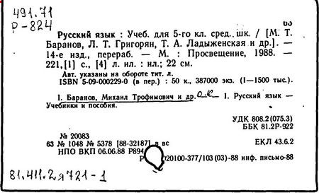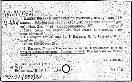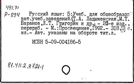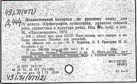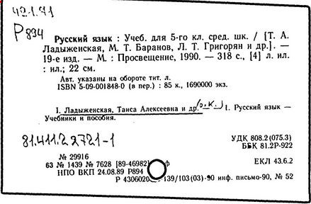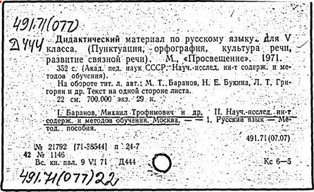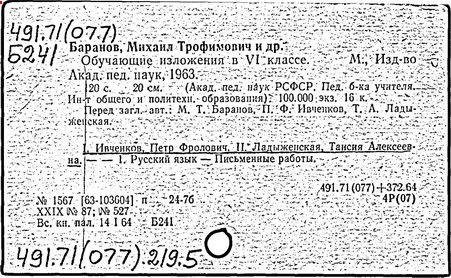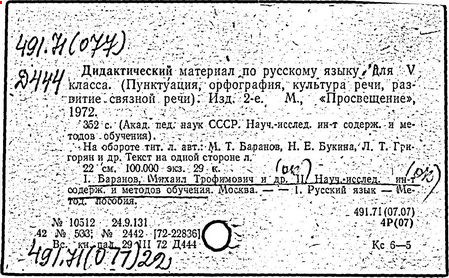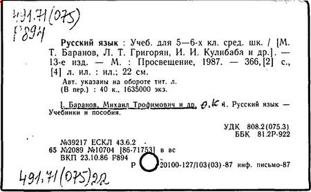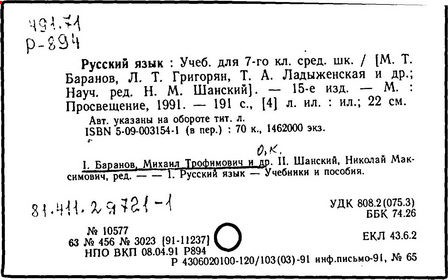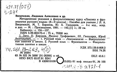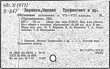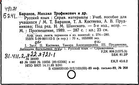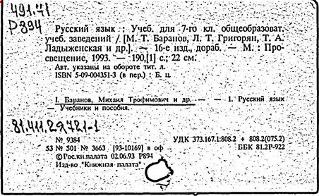 М.Т. Баранов. -М.: Просвещение, 1995. -240 с. -ISBN 5-09-005961-6