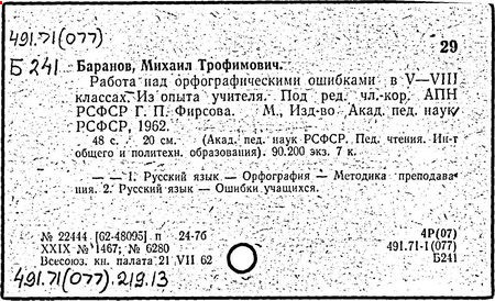 журнале "Русский язык в школе" в 1960-1998 годах [Текст]/ М.Т. Баранов;