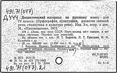 М.Т. Баранов. -4-е изд. -М.: Просвещение, 1999. -239,[1] с. -