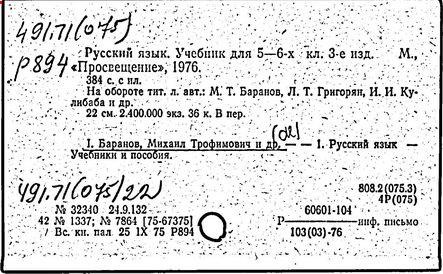 [Текст]: 5 - 11 кл./ М.Т. Баранов . -10-е изд. -М.: Просвещение,