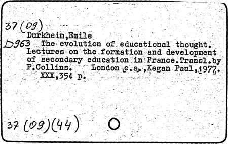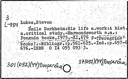 Литература: Коржева Э. М. Социологическая теория познания Э. Дюркгейма // Из истории буржуазной социологии XIX-XX вв. М., 1968; Осипова Е. В. Социология Э. Дюркгейма: библиогр. М., 1977; Lukes S. Emile Durkheim. His life and work: а historical and critical study. Harmondsworth, 1977.