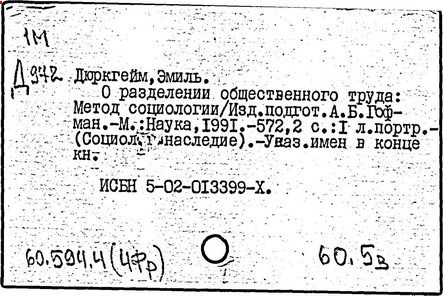 sociologie/ Э. Дюргейм; Ред. В.С. Собкин, Пер.