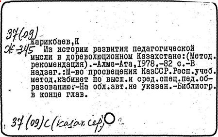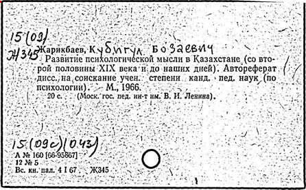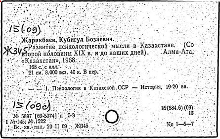 Ряд работ Жарикбаева посвящены проблемам истории психологии Казахстана («Развитие психологической мысли в Казахстане со второй половины XIX в.», 1965 г.). В докторской диссертации: «Развитие педагогической мысли в дореволюционном Казахстане», (1982 г.) Жарикбаев рассмотрел психолого-педагогическое наследие казахского народа с древнейших времен, проанализировал особенности народной педагогики и психологии казахов-кочевников, ввел в научный оборот ряд новых психолого-педагогических терминов и понятий, характерных для восточного региона.