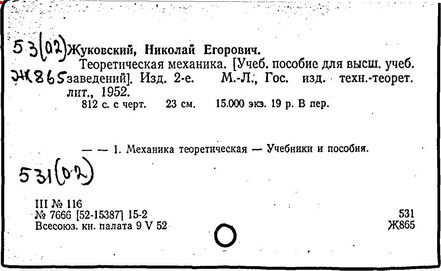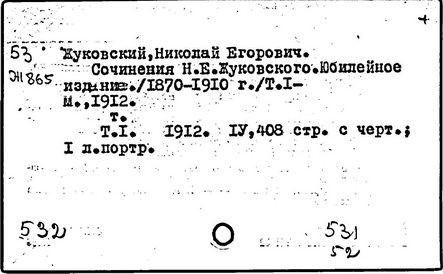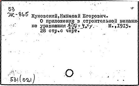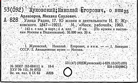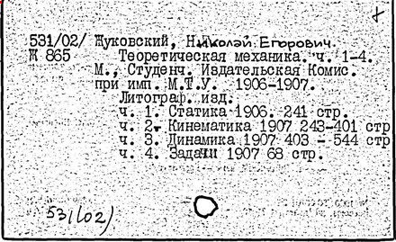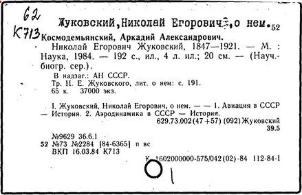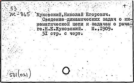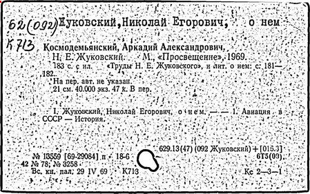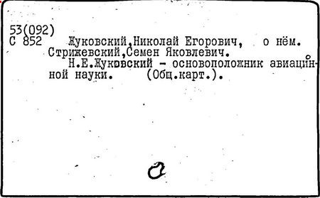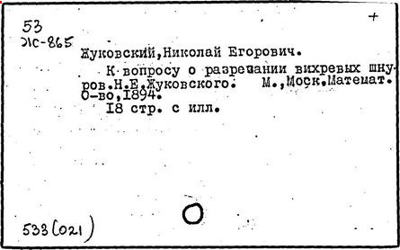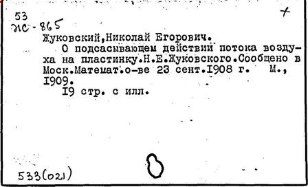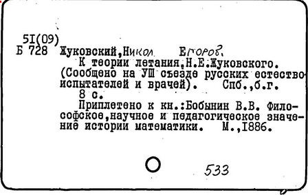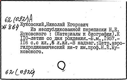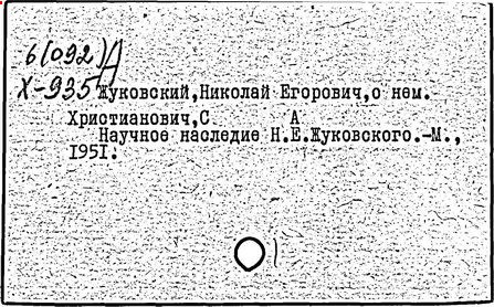 Литература: Келдыш М. В. "Научное наследство Н. Е. Жуковского", "Техника воздушного флота", 1947, 1 (226); Лейбензон Л. С. "Н. Е. Жуковский", М. - Л., 1947; Голубев В. В. "Н. Е. Жуковский", М., 1947; Христианович С. А. "Научное наследие Н. Е. Жуковского", М., 1951; Космодемьянский А. А. "Н. Е. Жуковский", М., 1969.
