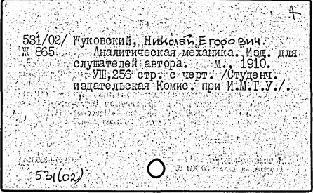 российский ученый в области механики, основоположник современной гидроаэродинамики. Родился в семье инженера-путейца. В 1868 году окончил физико-математический факультет Московского университета по специальности прикладная математика. С 1870 года преподаватель физики 2-й Московской женской гимназии, с 1872 года преподаватель математики, с 1874 года доцент по кафедре аналитической механики Московского высшего технического училища (МВТУ). В 1876 году защитил магистерскую диссертацию "Кинематика жидкого тела". За исследование "О прочности движения" Жуковскому была присуждена степень доктора прикладной математики (1882). С 1885 года преподавал теоретическую механику в Московском университете. В МВТУ и Московском университете Жуковский работал до конца жизни. В 1894 году Жуковский был избран членом-корреспондентом Петербургской Академии наук; в 1900 году выдвинут кандидатом в действительные члены Петербургской Академии наук, но снял свою кандидатуру, не желая оставлять преподавание в Московском университете и МВТУ, т. к. избрание означало бы переезд в Петербург. В 1905 году избран президентом Московского математического общества.