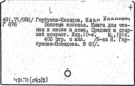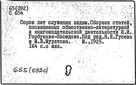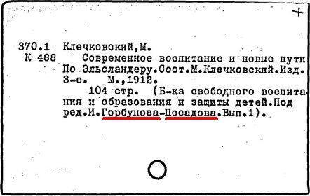 Литература: Сорок лет служения людям: сб. ст. / под ред. Н. Н. Гусева, М. В. Муратова. М., 1925; Чехов Н. В. И. И. Горбунов-Посадов и его педагогическая деятельность // Советская педагогика. – 1941. – № 2; Булгаков В. Ф. И. И. Горбунов-Посадов // Лев Толстой, его друзья и близкие. Тула, 1970.