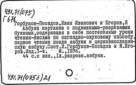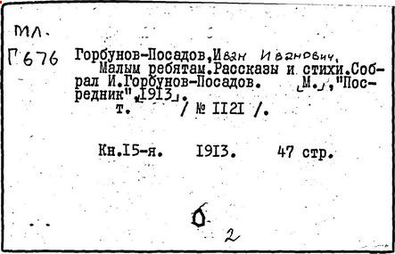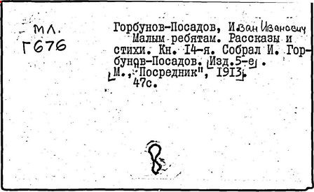 русский просветитель, издатель, педагог, последователь Л. Н. Толстого. Родился в Колпине. С 1885 г. сотрудник, в 1897 – 1925 гг. редактор издательства "Посредник", выпускавшего книги главным образом для народного чтения по различным отраслям знания и для самообразования ("Сельский и деревенский календарь", 1893 – 1917 гг., выходил и под другими названиями; серия "Деревенское хозяйство и деревенская жизнь" и др.). Большое внимание Горбунов-Посадов уделял изданию детской литературы: популярная серия "Библиотека для детей и юношества" (с 1898 г.), сборник "Малым ребятам" (вып. 1-25) и "Для маленьких" с рисунками известной художницы E. M. Бем. Широкое распространение получили его "Азбука-картинка с подвижными разрезными буквами" (в соавторстве с Я. Е. Егоровым, 1894 г.; 1917 г.) и составленные им (при участии Е. Е. Горбуновой-Посадовой, Егорова и В. Лукьянской) книги для чтения в школе и дома "Красное солнышко" (1892 г., последнее издание 1923 г.), "Ясная звёздочка" (1894 г.; 1923 г.), "Золотые колосья" (1900; 1916 г.), географическая хрестоматия "Кругом света" (ч. 1-2, 1901 – 1908 гг.; ч. 1, 1914 г.). В 1909 – 1918 гг. издавал журнал для детей «Маяк». Под редакцией Горбунова-Посадова выпускались обширная справочная литература для детей, методические руководства для учителей по языку, математике, географии, рисованию, ручному труду.