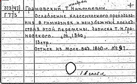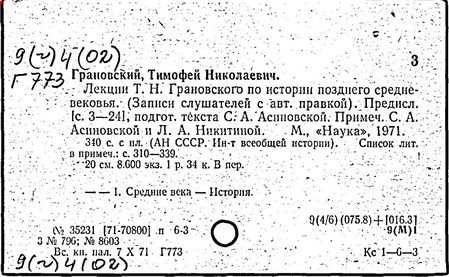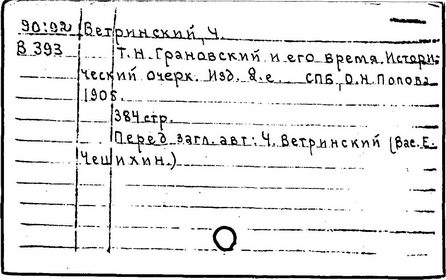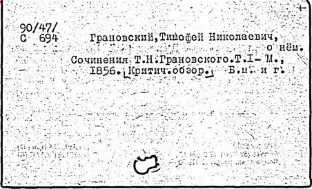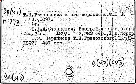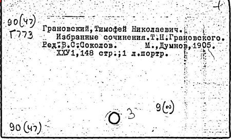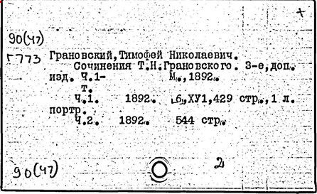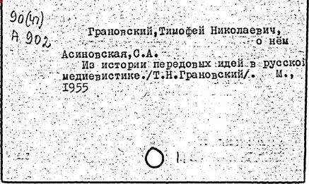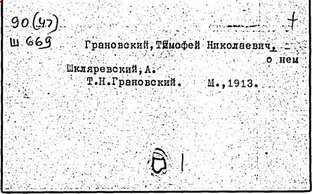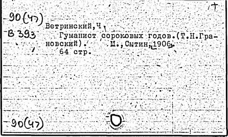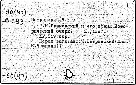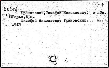 Литература: Ветринский Ч. (В. Е. Чешихин). Т. Н. Грановский и его время. 2-е изд. СПб., 1905; Косминский Е. А. Жизнь и деятельность Т. Н. Грановского // Вестник МГУ. – 1956. – № 4; Асиновская С. А. Из истории передовых идей в русской медиевистике (Т. Н. Грановский). М., 1955; Алпатов М. А. Труды Т. Н. Грановского // Очерки истории исторической науки в СССР, т. 1. М., 1955; Т. Н. Грановский: [сб. ст.]. М., 1970; Т. Н. Грановский. Библиография (1828-1967). М., 1969.