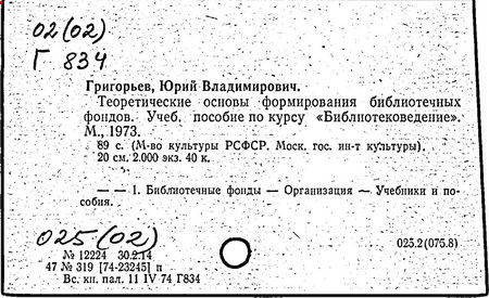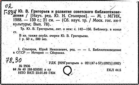 Сочинения: Ю. В. Григорьев: Библиография // Библиография. 1999. № 6.