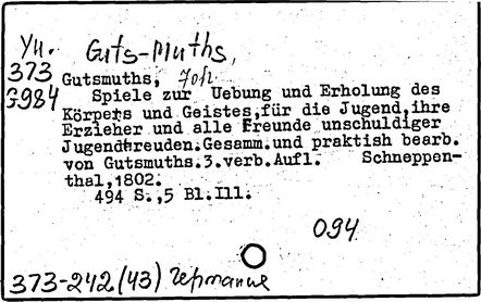 Литература: Festschrift zum 200. Geburtstage von Johann Christoph Friedrich Guts Muths, [B., 1959].