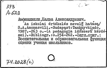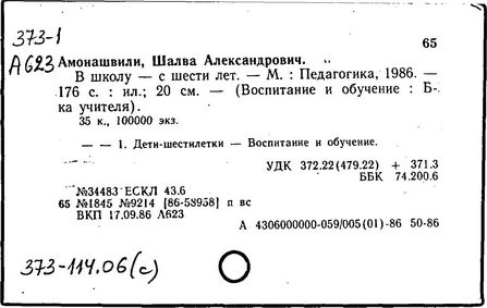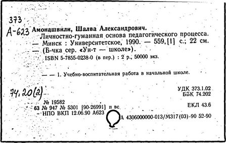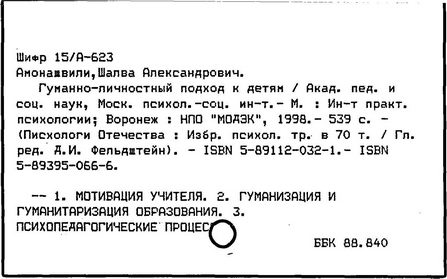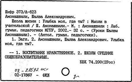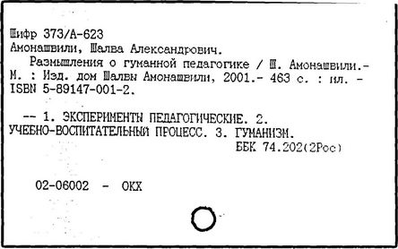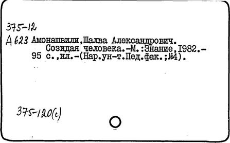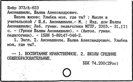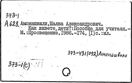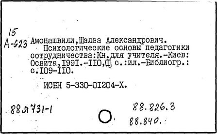 грузинский педагог и психолог, действительный член АПН СССР (1989-1991 гг.), доктор психологических наук (1973 г.), профессор (1980 г.). Родился в Тбилиси. После окончания Тбилисского университета в 1955 году работал в НИИ педагогики Министерства Просвещения Грузинской ССР (в 1983-1991 гг. - директор), с 1987 года - генеральный директор экспериментального научно-педагогического производственного объединения МНО Грузии. С 1964 года руководит экспериментом по определению нового содержания, форм и методов начального обучения, в т. ч. обучения детей с 6 лет в условиях школы. Система воспитания и обучения Амонашвили - "педагогика целостной жизни детей и взрослых" - строится на началах гуманности и веры в ребёнка, на основе воспитания творчеством и сотрудничества педагогов с детьми. Задача школы - опираясь на всю полноту детской жизни, придать ей культурные формы саморазвития, превратить школьные занятия в "уроки счастья жизни", познания, общения, взросления. Амонашвили предлагает организацию такой детской жизни, которая помогает взрослому направить энергию ребёнка на продуктивные занятия. Нравственная основа детской учебной кооперации в системе Амонашвили - способность радоваться успехам других, готовность прийти на помощь. Отношения между старшими и младшими детьми организуются путём шефской помощи детскому саду, начальным классам и пр. Отменены балльные оценки, не допускается сравнение детей друг с другом. Обучение начинается сразу на нескольких доступных учащимся уровнях, например обучение чтению - от беглого чтения до знакомства с буквами. Ученики соучаствуют в построении урока, в составлении заданий, учебника, в планировании ответов и т.п.