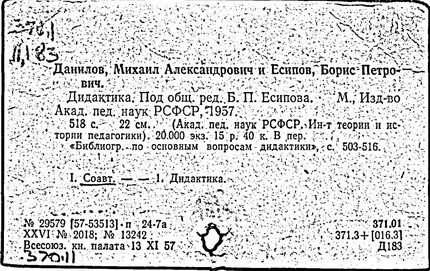 ред. М. А. Данилова, Б. П. Есипова. - М.: Изд-во Акад. пед.