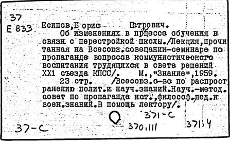 [о чл.- кор. Акад. пед. наук СССР Б. П. Есипове (1894-1967