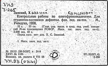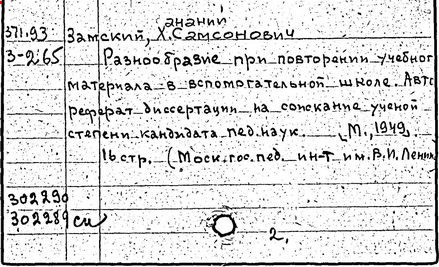 дефектолог, специалист в области олигофренопедагогики. Профессор (1983 г.). Родился в Сураже Черниговской губернии. В 1939 г. окончил Московский государственный педагогический дефектологический институт. Работал в Научно-практическом институте специальных школ (ныне Институт коррекционной педагогики), сотрудничал с А. Р. Лурией, Ж. И. Шиф, И. И. Данюшевским. В 1939-1946 гг. служил в Красной Армии. В 1950 г. заведующий кафедрой общей педагогики в педагогическом институте г. Барановичи. С 1951 г. – в МГПИ им. В. И. Ленина, в 1951-1974 гг. заведующий кафедрой олигофренопедагогики, свыше 10 лет декан дефектологического факультета. По инициативе 3амского и при его участии открыты дефектологические факультеты в педагогических институтах Свердловска, Иркутска, Ташкента. Автор свыше 70 научных работ, переведен на многие иностранные языки. Разрабатывал широкий круг проблем обучения и воспитания детей с нарушениями умственные развития. Книга 3амского «История олигофренопедагогики» (1980 г.) - уникальный научный труд, обобщающий достижения данной отрасли педагогической науки.