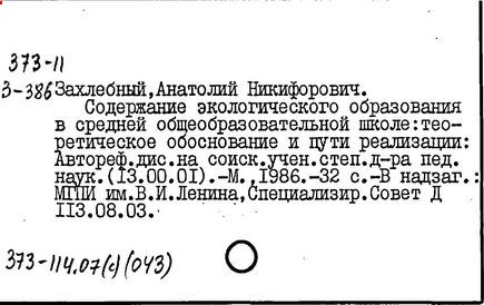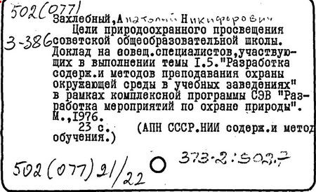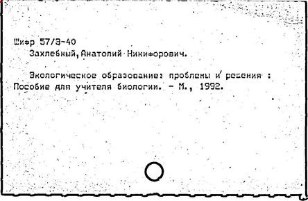 [Текст]/ А. Н. Захлебный // Экологическое образование: до