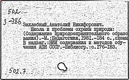 А. Н. Захлебный и др.]; АПН СССР, Проблем. Совет по экол. образованию,