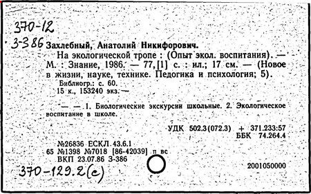 "Экология и образование", 1992. -76 с.: табл. -ISBN 5-85739-001-0